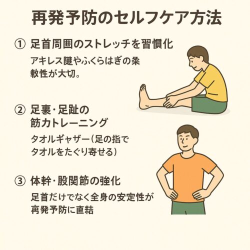 → 足首だけでなく全身の安定性が再発予防に直結。