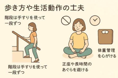 といった日常生活の工夫も、膝への負担軽減に大きくつながります。