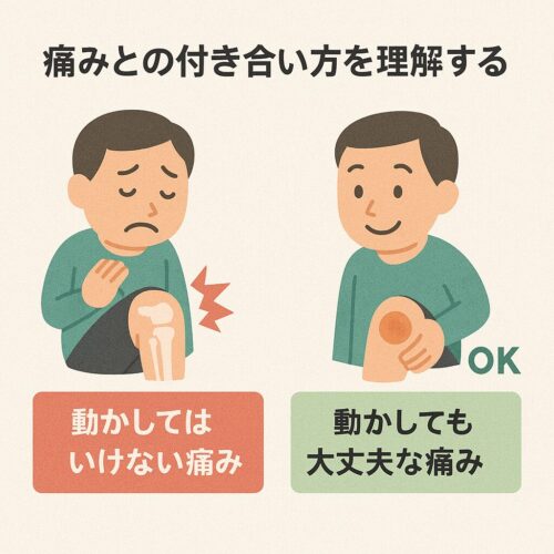 「動かしてはいけない痛み」と「動かしても大丈夫な痛み」を区別できると安心して続けられます。