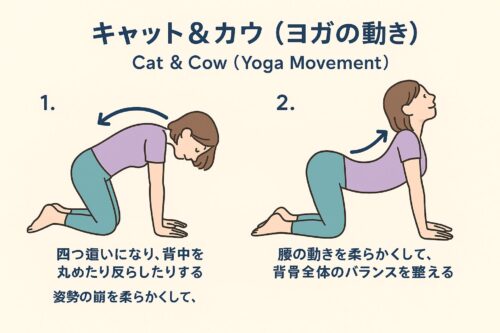 - 四つ這いになり、背中を丸めたり反らしたりする