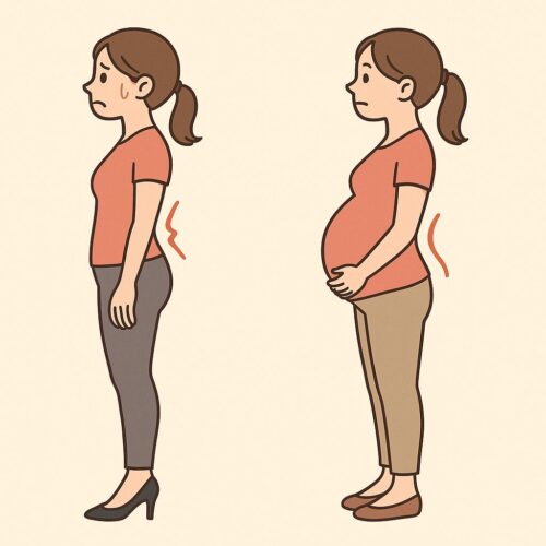 ヒールで重心が前に移動し、腰を反ってバランスを取るようになる。 - 妊娠・産後の影響