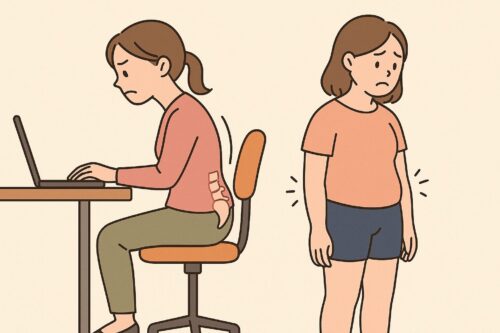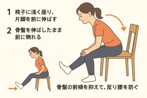 - 軽い筋トレ(腹筋・殿筋)で姿勢を安定させる