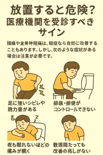 正しく理解することで「ただの腰痛だと思っていたら…」という不安を減らし、早めの対応につながります。