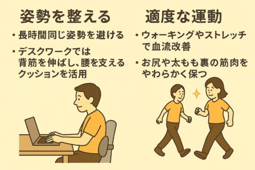 軽度の腰痛や坐骨神経痛であれば、日常生活の工夫で症状を和らげられることもあります。