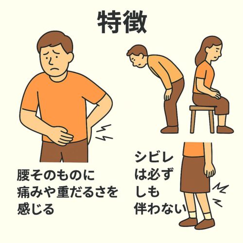 - 前かがみや長時間の立位・座位で悪化しやすい